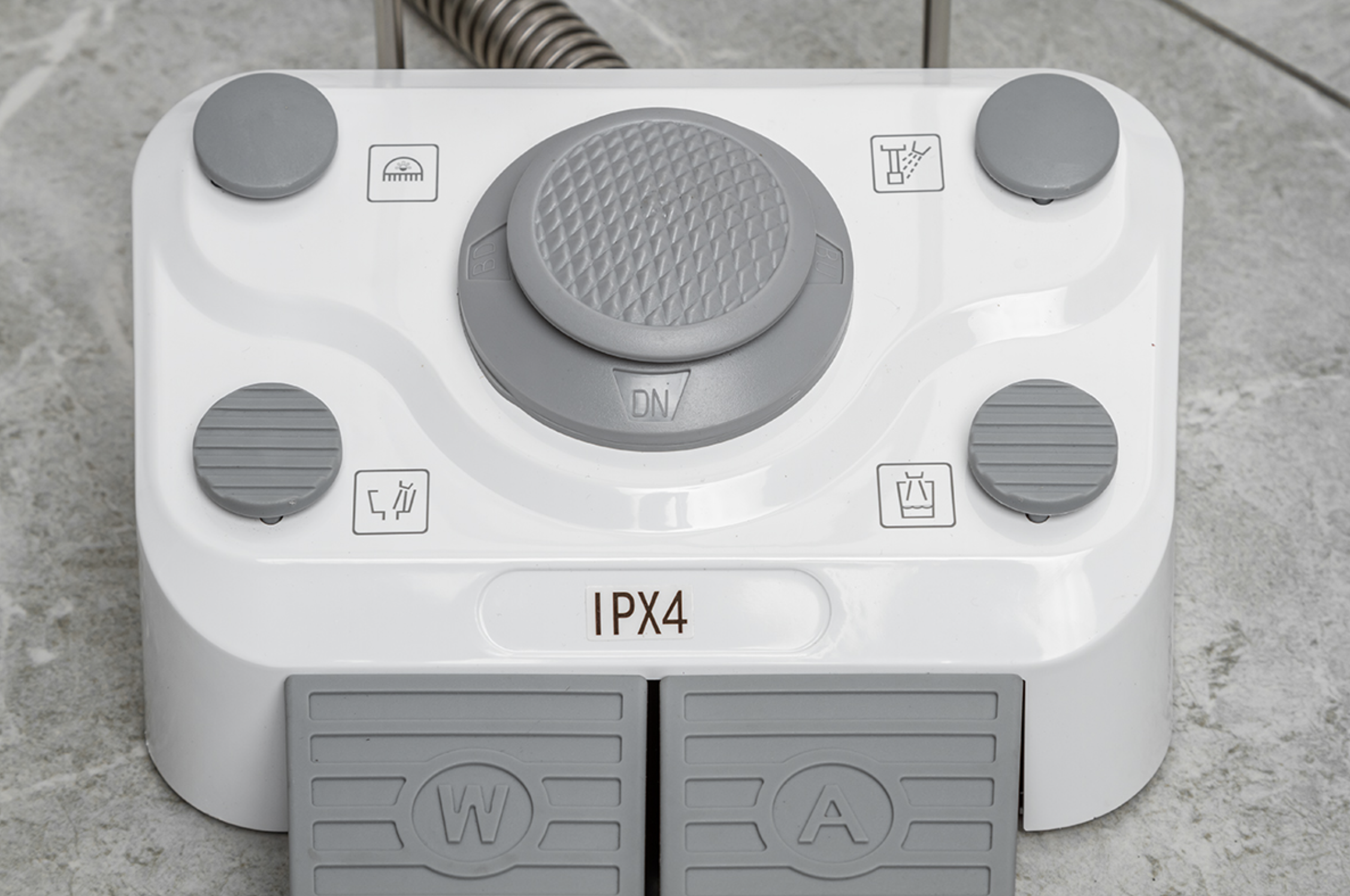 Педаль управления размещена на основании кресла: имеется возможность запрограммировать 3 положения, есть автовозврат в нижнее положение. Подголовник кресла регулируется по 3 осям, при необходимости, можно установить положение для детского приема.