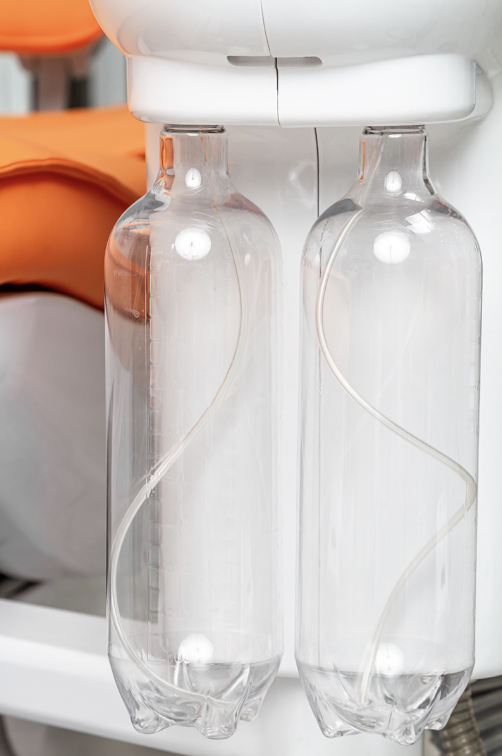 - Емкость для дистиллированной воды встроена в гидроблок, одна дистиллированная вода, одна дезинфекция.