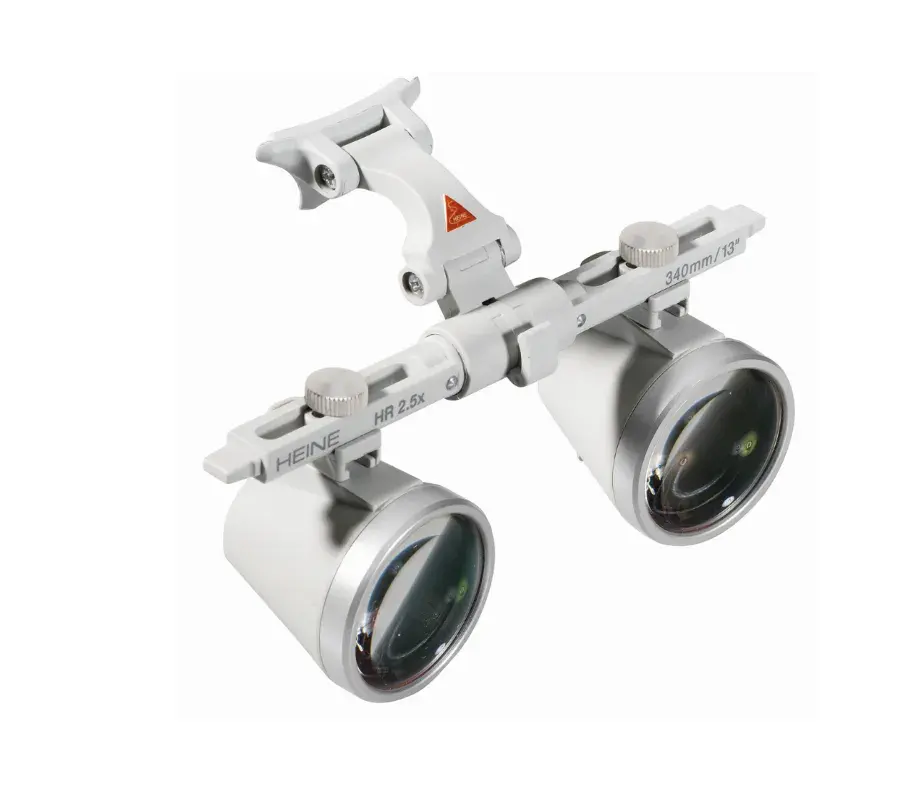 Бинокулярная лупа Heine® HR, закрепленная на шлеме Professional L, представляет собой высокоточное оптическое устройство. Ее отличительной чертой является инновационная система крепления i-View, которая позволяет точно настраивать угол обзора, а также поднимать оптику независимо от расположения осветителя ML4 LED. Этот инструмент гарантирует высокое разрешение изображения и идеально подходит для профессионалов, которым важна точность и комфорт во время длительных процедур.