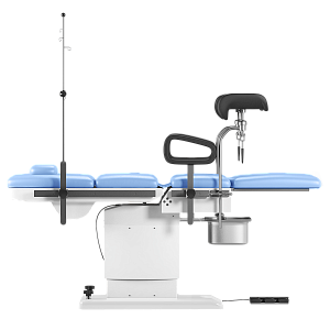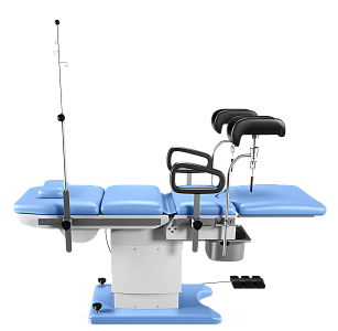 Комплектация «всё включено»: В стандартный комплект входит всё необходимое для работы: надежные держатели для ног по Гепелю, подлокотники, гинекологический лоток и ножной пульт управления для удобства регулировки.