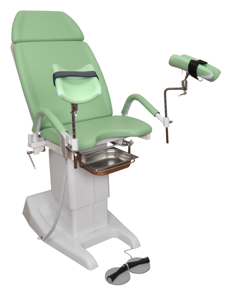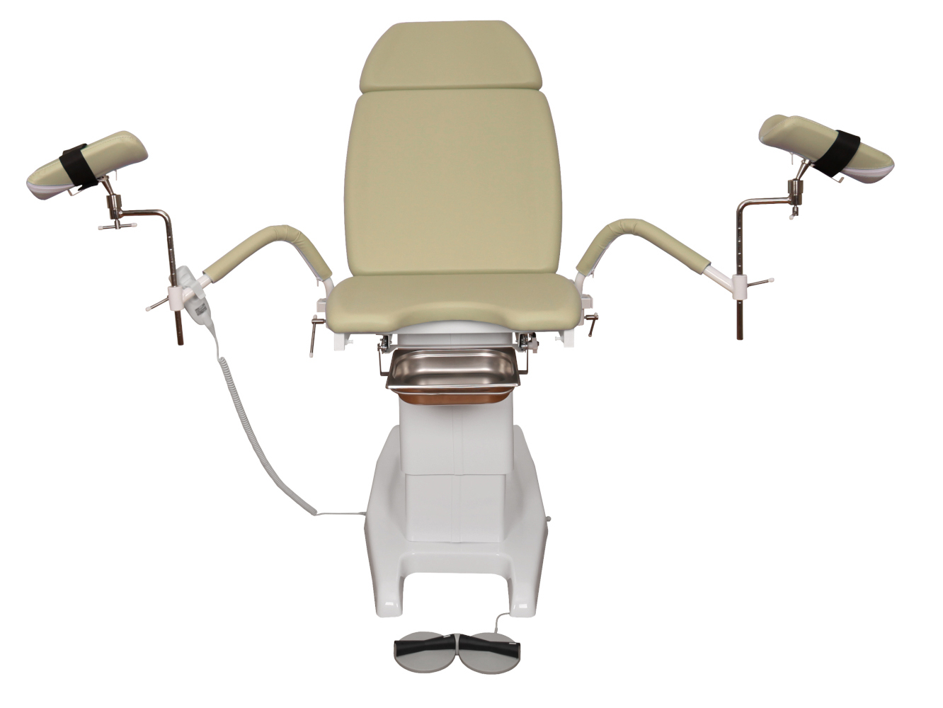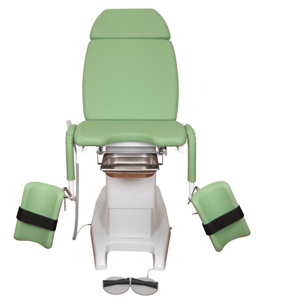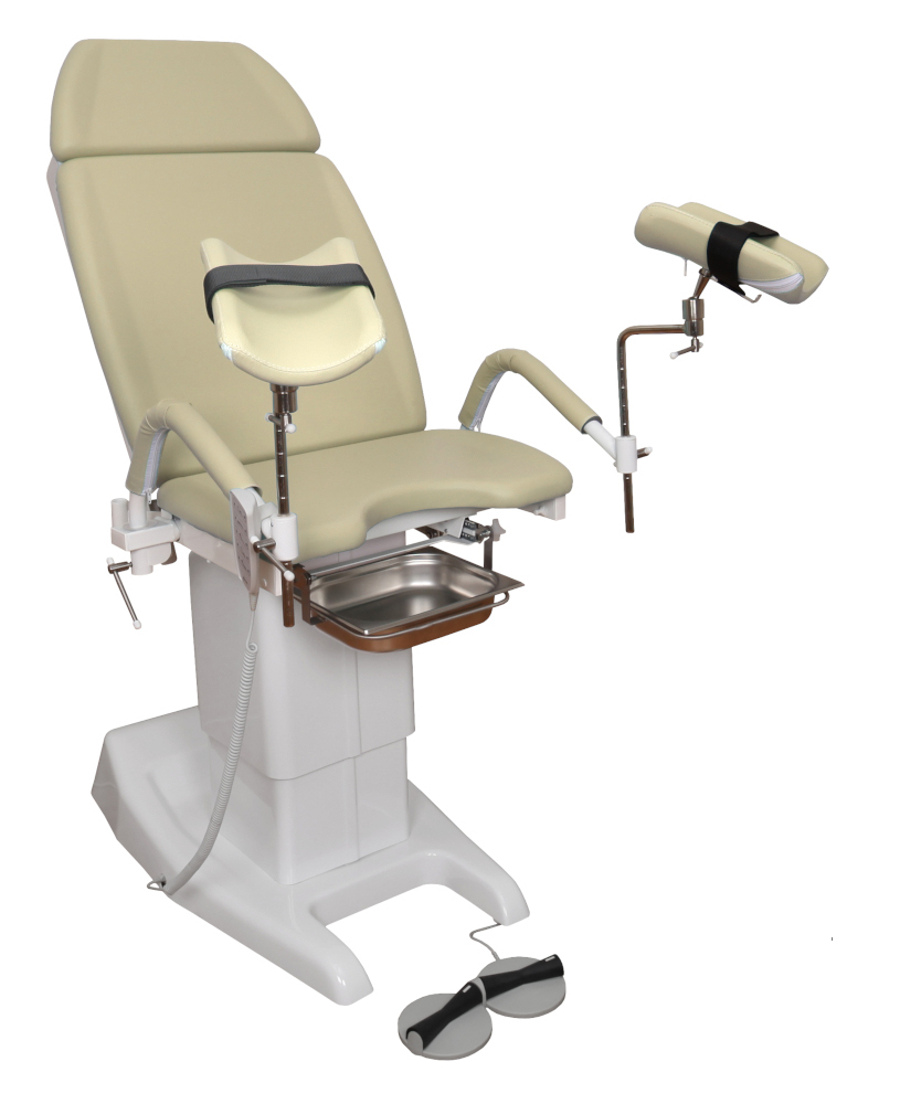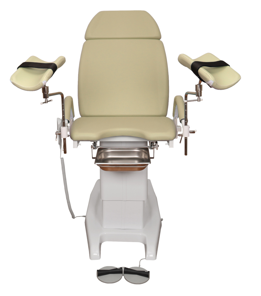 Продуманная конструкция: Синхронно раздвижные подколенники и ножные ложементы с регулировкой по высоте и углу наклона обеспечивают правильное и безопасное положение пациентки.
