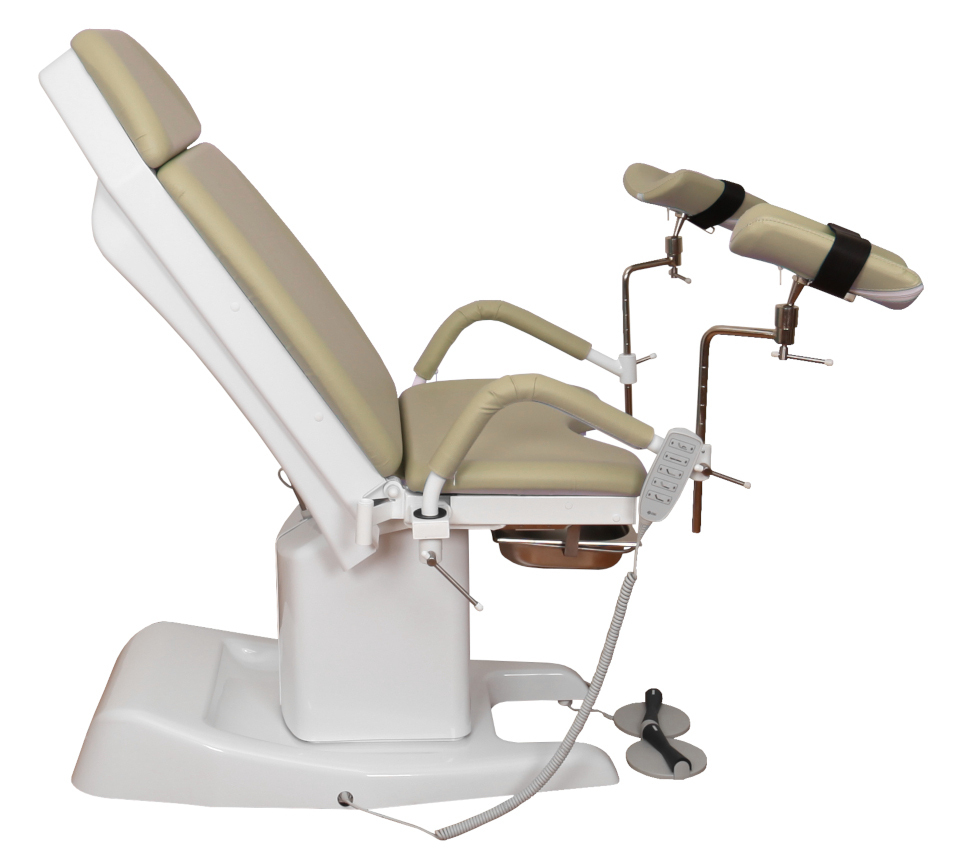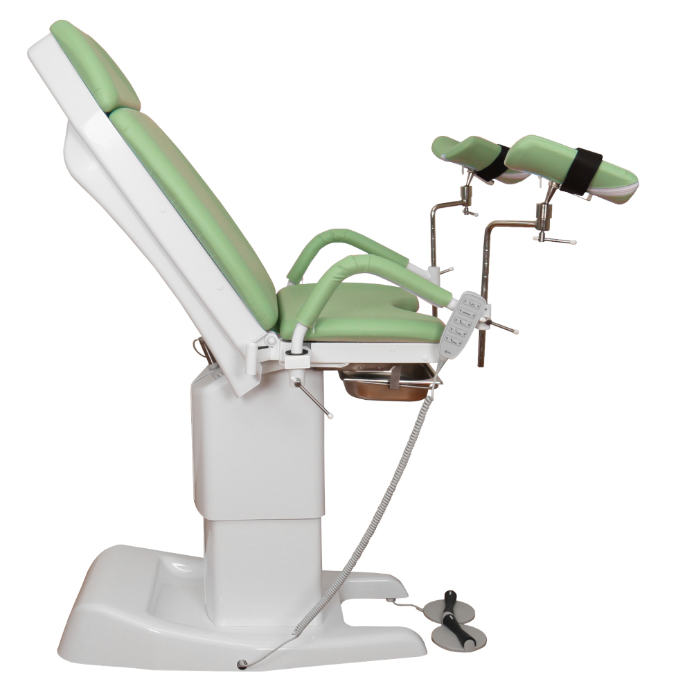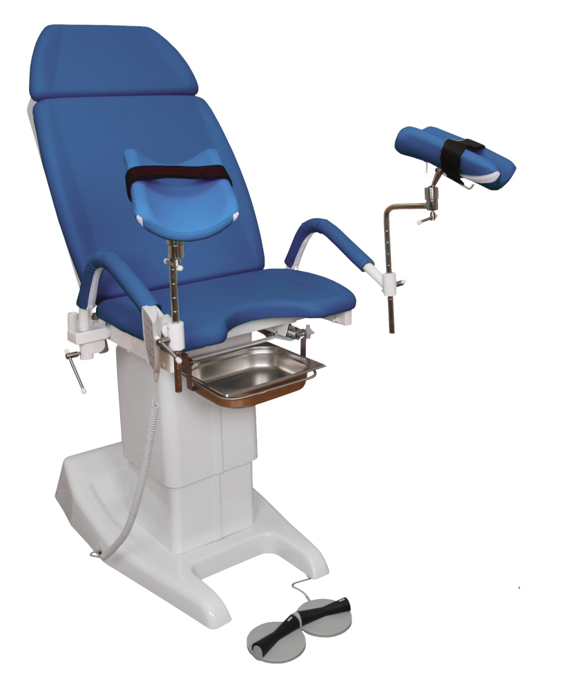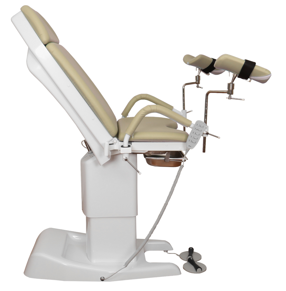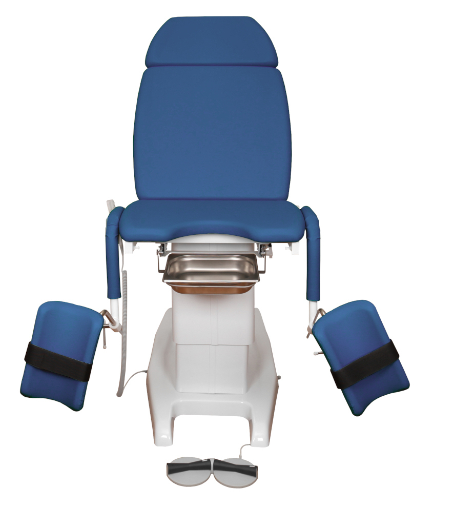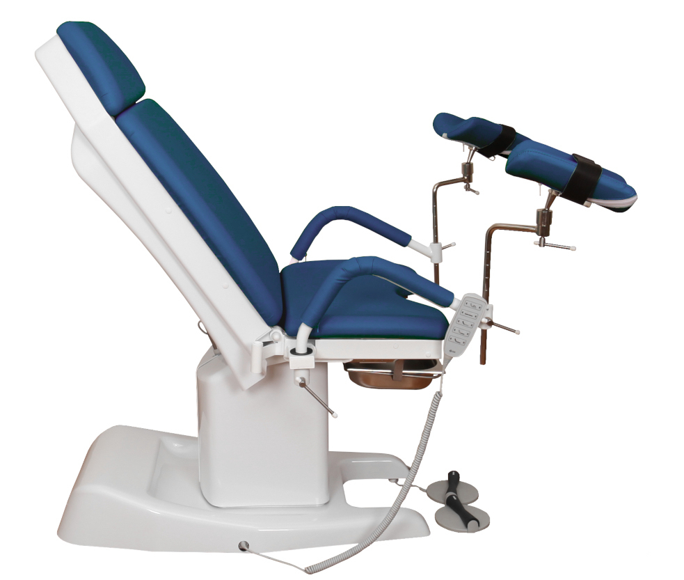 Продуманная конструкция: Синхронно раздвижные подколенники и ножные ложементы с регулировкой по высоте и углу наклона обеспечивают правильное и безопасное положение пациентки.