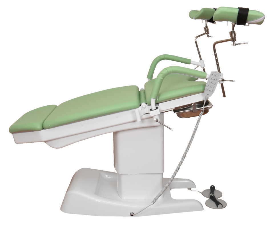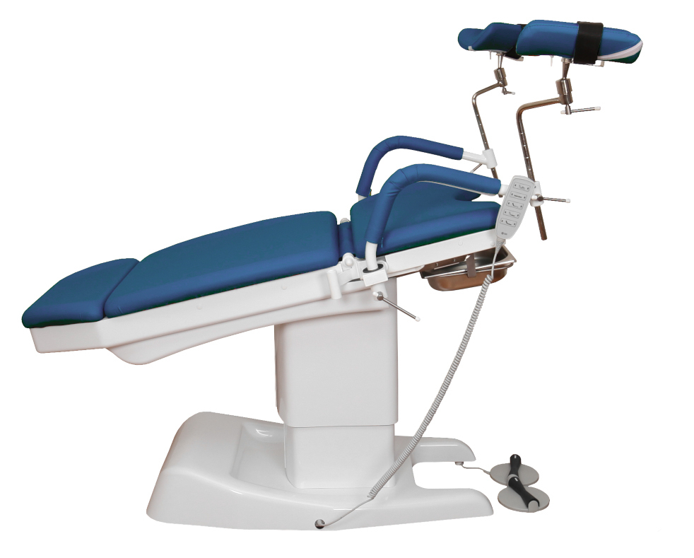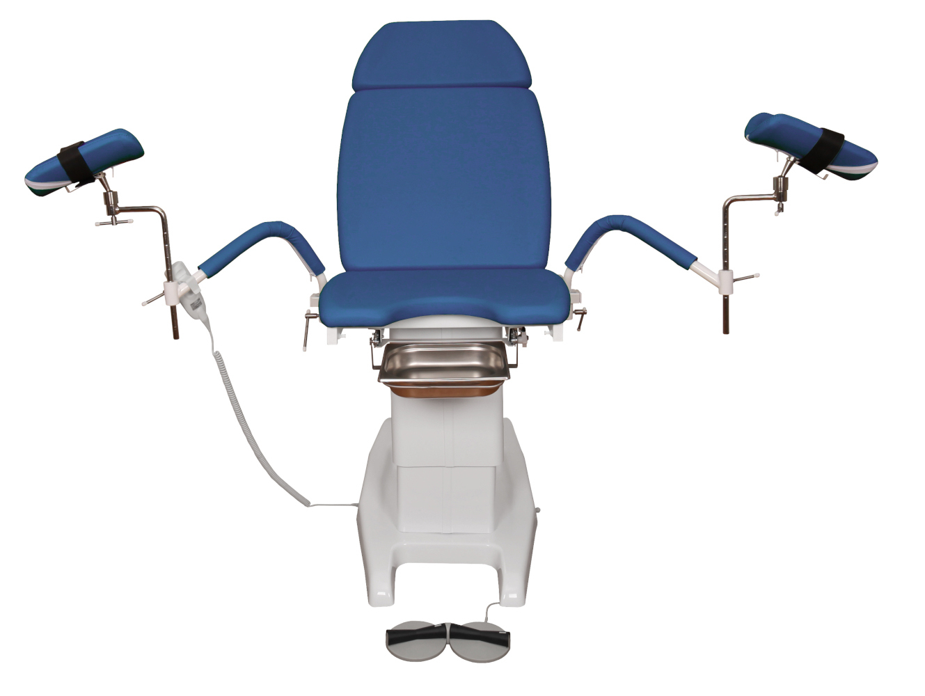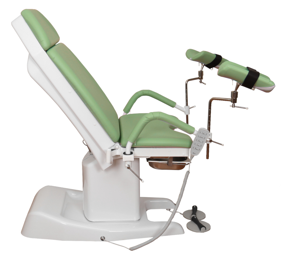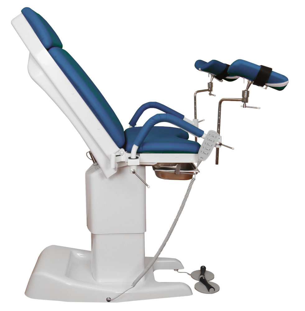 Продуманная конструкция: Синхронно раздвижные подколенники и ножные ложементы с регулировкой по высоте и углу наклона обеспечивают правильное и безопасное положение пациентки.