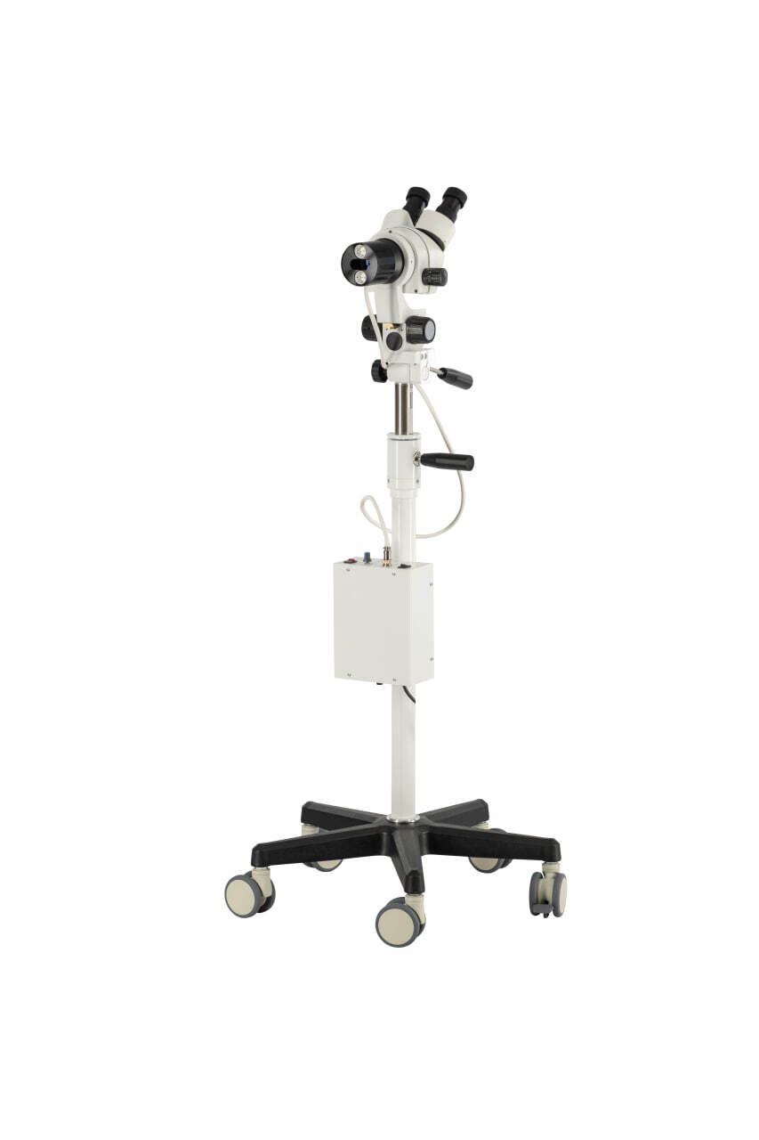 Прямой штатив не занимает много места и удобен при использовании в небольших кабинетах. Возможность регулировки высоты оптической головы позволяет подстраивать ее на необходимую высоту для комфортной работы врача.