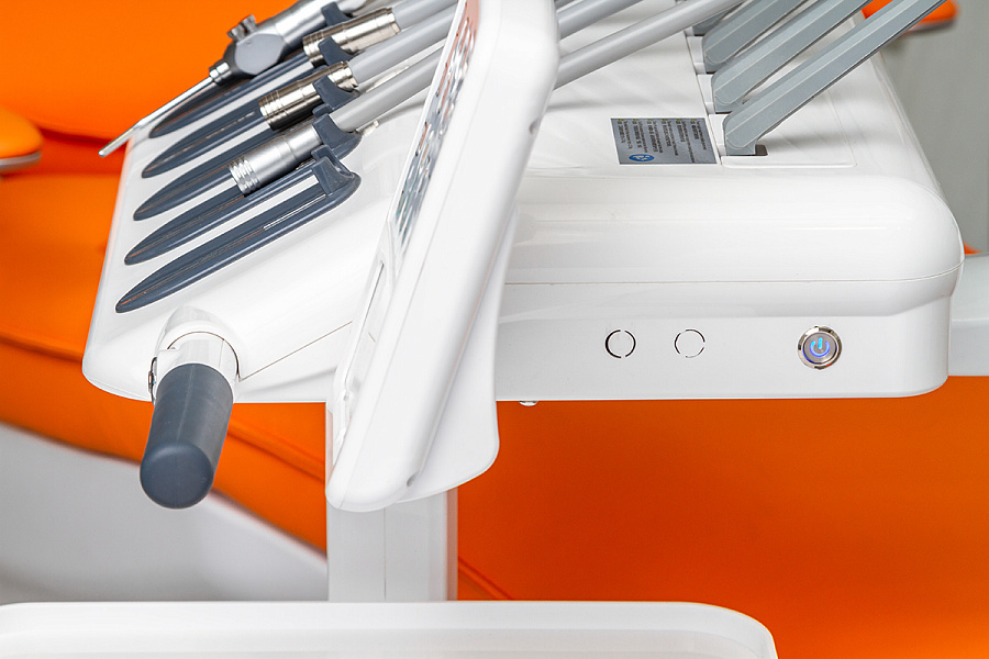 - Модуль ассистента на 4 инструмента с пылесосом и слюноотсосом (шланги с увеличенным просветом для использования с хирургической помпой).