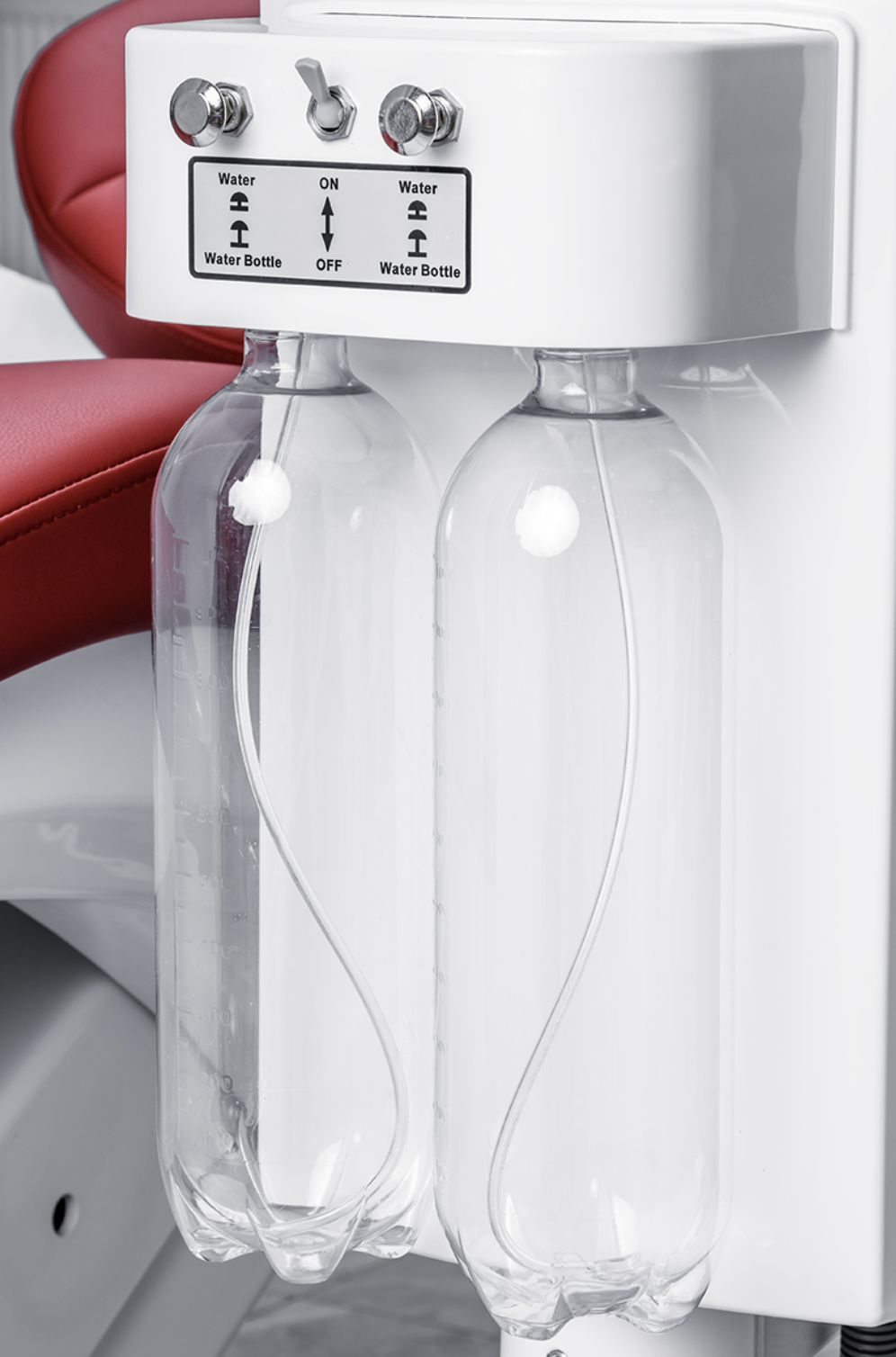 - Эжекционная система аспирации с увеличенными гофрированными шлангами 17 мм и 10 мм на пылесос и слюноотсос, для дальнейшей модернизации под вакуумную систему аспирации (Cattani, Mercury, MonoJet, Durr).