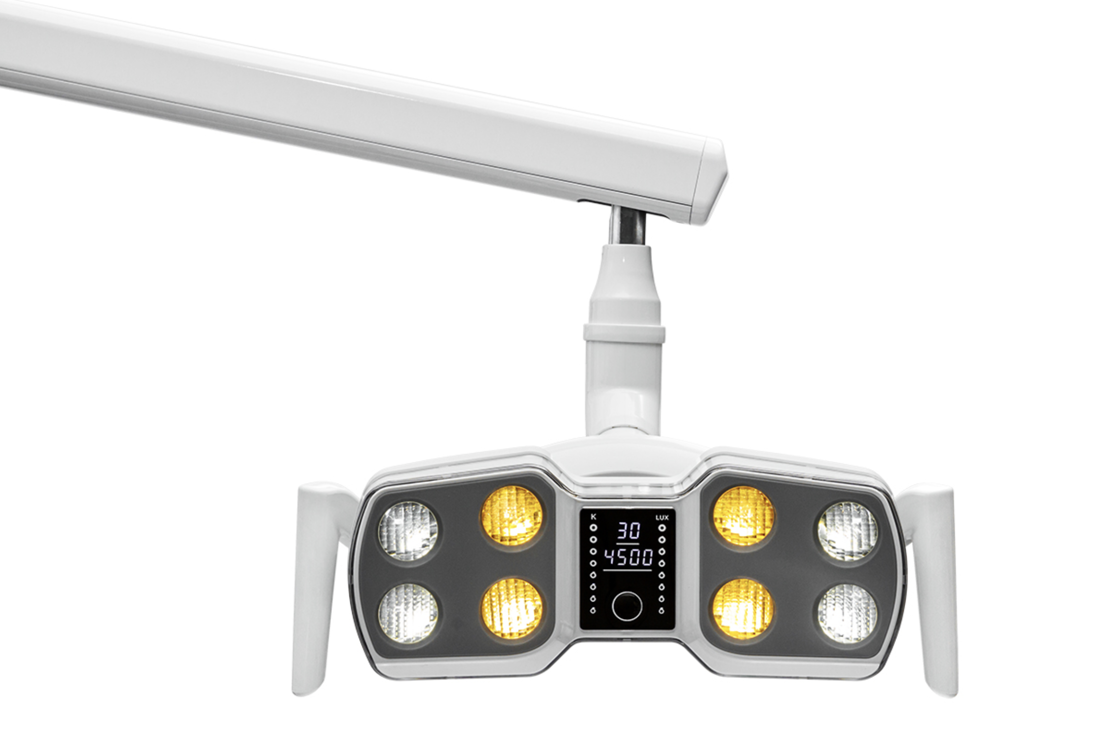 - 8-диодный светильник с максимальной мощностью 30 000 люкс. Возможность изменения температуры света до 5000К.